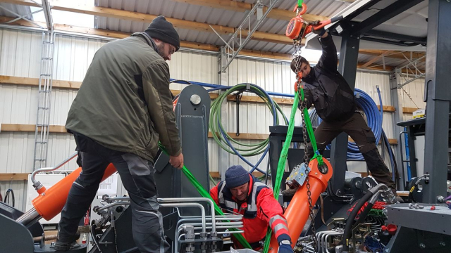 Verlegedemonstration des im Projekt KollWeb 4.0 entwickelten Maschinensystems zum Verlegen von Agrothermierohr in 2 m Tiefe
